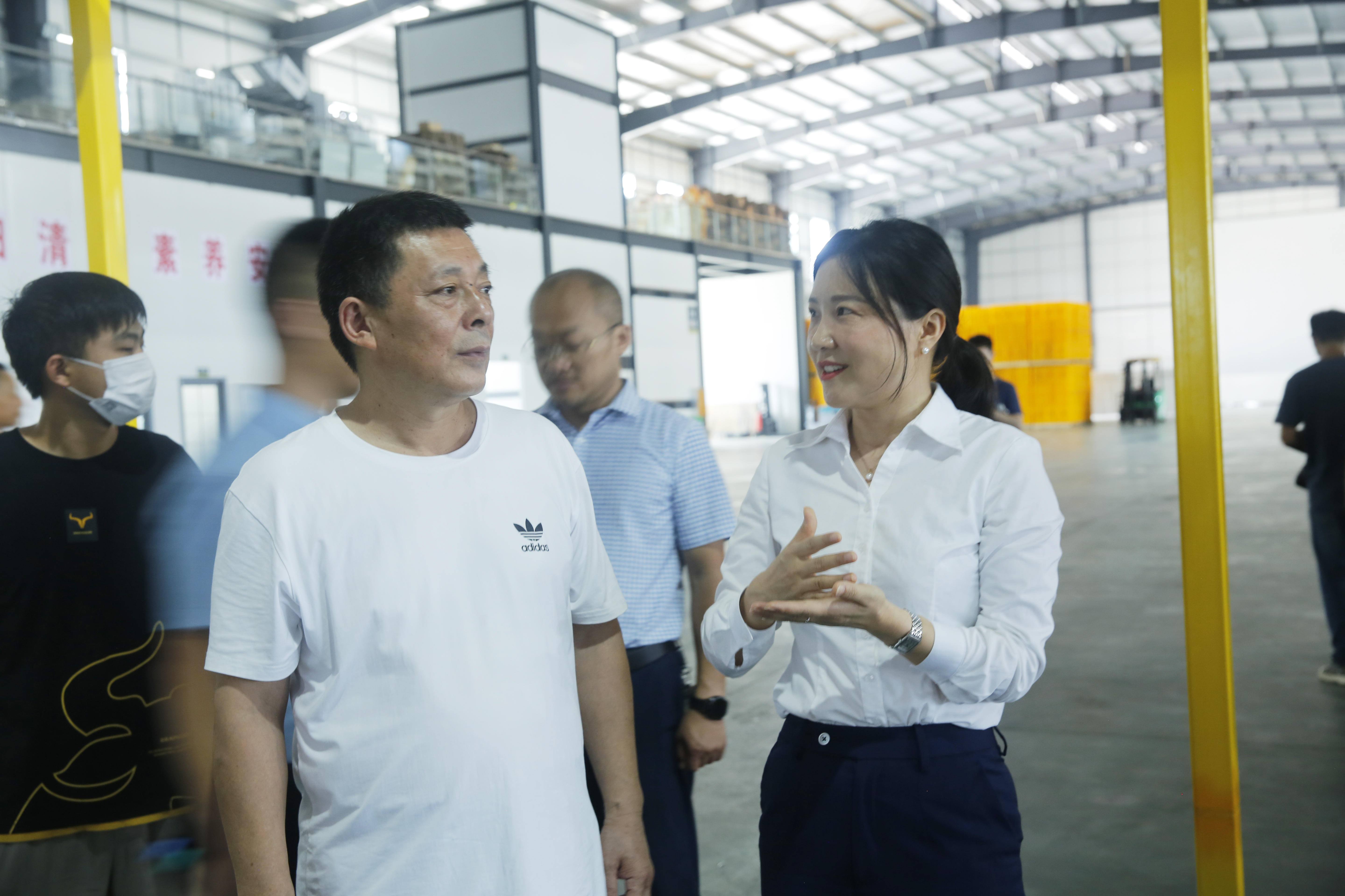 湘佳橘友總經(jīng)理陳凌嬌在帶領(lǐng)學(xué)員們參觀湘佳橘友生產(chǎn)車間的途中,耐心地為大家講解湘佳橘友的基本情況和康備科柑橘智能檢測優(yōu)選設(shè)備的各項(xiàng)工藝。
